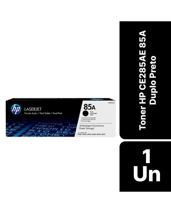 Características:- Embalagem com 2 unidades de toner HP CE285A- Para P1102W, M1132, M1212.- Rendimento médio aproximado: 1.600 páginas padrão¹, por toner.- A tecnologia HP assegura impressão sempre confiável e precisa.- Inteligência incorporada. trabalhe sem interrupções.- Texto nítido e intenso e imagens precisas em cada impressão.¹Média baseada na ISO/IEC 24711 ou metodologia de teste e impressão contínua da HP. O rendimento real varia consideravelmente de acordo com o conteúdo das páginas impressas e outros fatores* As especificações podem ser alteradas sem aviso prévio ** Imagem meramente ilustrativa.