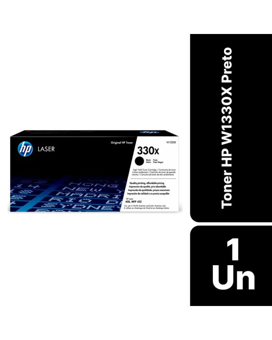 Características:Com o Toner HP W1330X Preto, você poderá imprimir sem precisar se preocupar com a qualidade e durabilidade, este cartucho tem rendimento de aproximadamente 15.000 páginas considerando 5% de cobertura no papel A4 garantindo assim, que você possa imprimir um grande volume de documentos sem se preocupar em substituir o toner com frequência.Detalhes:- Marca: HP;- Modelo: W1330X;- Linha: Toners;- Cor: Preto;- Contém: 1 unidade do produto;- Tecnologia de impressão: Laser;- Rendimento por página: Aproximadamente 15.000 páginas;- Cartucho de toner de alto rendimento;- Impressões de alta definição;- Produto Original.Impressoras Compátiveis:- Modelos HP Laser 408, HP Laser M 432.Medidas:- Dimensões embalagem: 34,8 x 20 x 16cm (CxLxA).Descarte de Cartuchos e Toners:- Você pode fazer o descarte com ajuda do ReCiclo, um projeto da Contabilista através da Contabilista Responsável, basta enviar os seus resíduos para a nossa Central de Distribuição*, se você é de Curitiba ou de Joinville, pode ir até uma de nossas lojas ou preencher o formulário disponível no site para solicitar retirada de materiais.Acesse o Link para verificar as marcas que reciclamos e nossos endereços: https://www.contabilistaresponsavel.com.br/reciclo.* Enviar conteúdo aos cuidados do Setor de Reciclagem.** Atenção: Cartuchos e Toners compatíveis não entram no descarte do ReCiclo, apenas suprimentos originais de nossos parceiros (confira a lista no link acima).Conteúdo da embalagem: 1 Cartucho de toner e 1 Guia de reciclagem.* As especificações podem ser alteradas sem aviso prévio ** Imagem meramente ilustrativa.