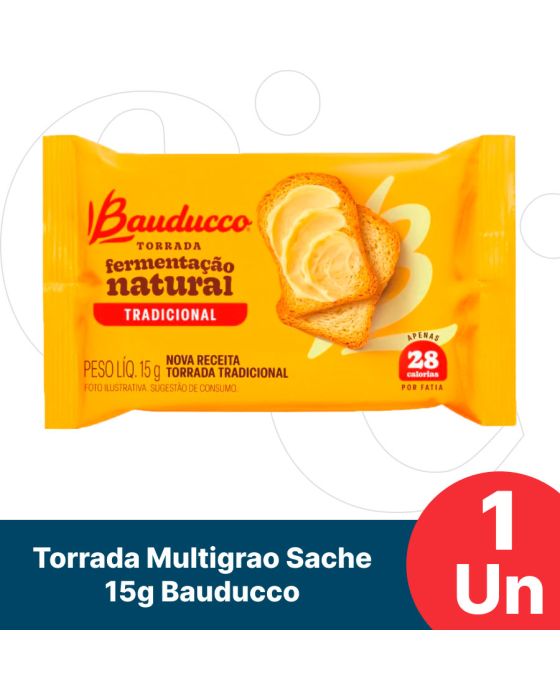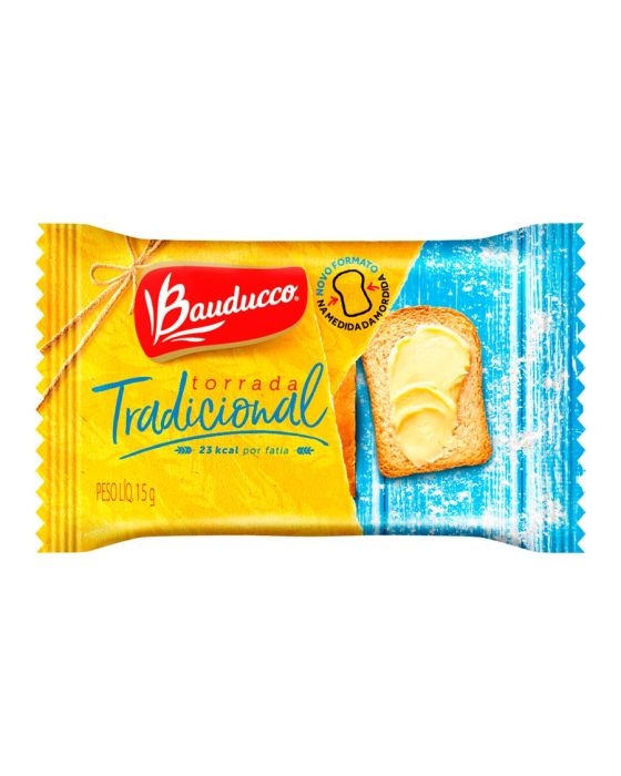 Caracteristicas:Deliciosas, leves e crocantes: as torradas levemente salgadas Bauducco são ideais para começar seu dia.- Embalagem 15g (2 unidades)- Sabor: TradicionalIngredientes: farinha de trigo enriquecida com ferro e ácido fólico, gordura vegetal, açúcar, sal, extrato de malte, fécula de mandioca e emulsificante: lecitina de soja.CONTÉM GLÚTEN. ALÉRGICOS: contém derivados de trigo, cevada e de soja. pode conter: centeio, aveia, amendoim, amêndoa, avelãs, castanha-de-caju, castanha-do-pará, gergelim, leite e ovos. a validade mencionada refere-se ao produto ainda fechado, desde que, conservado em local seco, fresco e inodoro. consumir logo após aberto. * As especificações podem ser alteradas sem aviso prévio ** Imagem meramente ilustrativa.