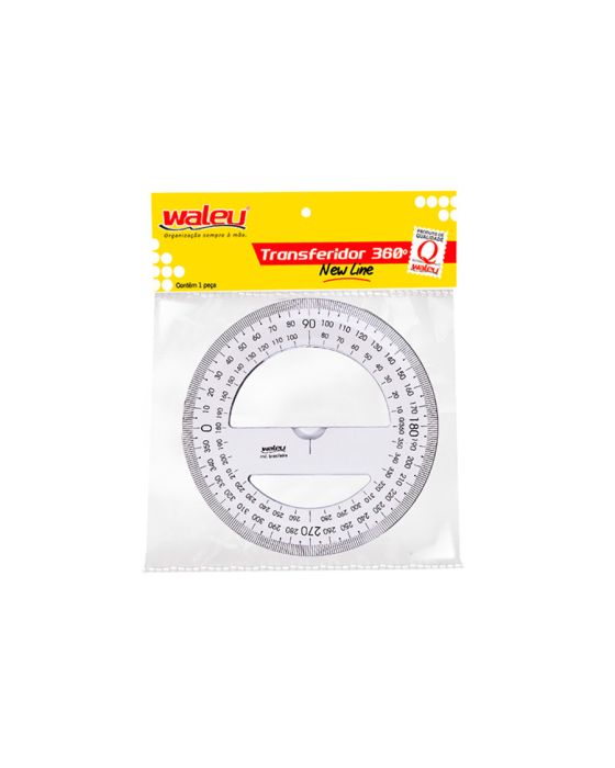 Características:Um Transferidor New Line é uma régua especial que serve para medir os ângulos ao longo de uma circinferência. Sendo fabricada em poliestireno, apresentada na versão 360° o transferidor New Line traz resistência e durabilidade!Detalhes: - Marca: Waleu.- Modelo: 10290004.- Linha: Transferidor.- Cor: Transparente/Incolor.- Contém: 1 unidade do produto embalado individualmente.- Espessura: 0,3mm.- Medidas: 0,3 x 12cm.- Auxilia na medição do ângulo das figuras- Auxilia no traçado e desenvolvimento de desenhos geométricos * As especificações podem ser alteradas sem aviso prévio ** Imagem meramente ilustrativa.