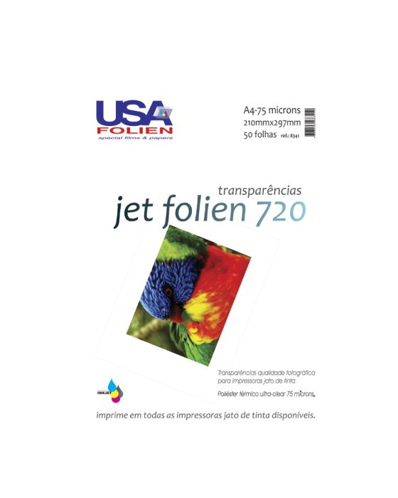 Caracteristicas:- Transparência produzida a partir de filme de poliéster 75 microns ultra clear, com tratamento térmico, antiestático e coating ink-jet de última geração, sem granulação.- Aceita impressão em resolução fotográfica e atinge alta densidade, com cores fortes e reduzido tempo de secagem.- Utilizando tintas de qualidade, obtém-se transparências com alta resistência a U.V. portanto longa duração.- Somente para impressão em equipamentos Jato de Tinta* As especificações podem ser alteradas sem aviso prévio ** Imagem meramente ilustrativa.