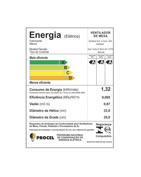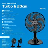 Ventilador De Mesa Turbo Premium 6p 52w 30cm 127v Ventisol