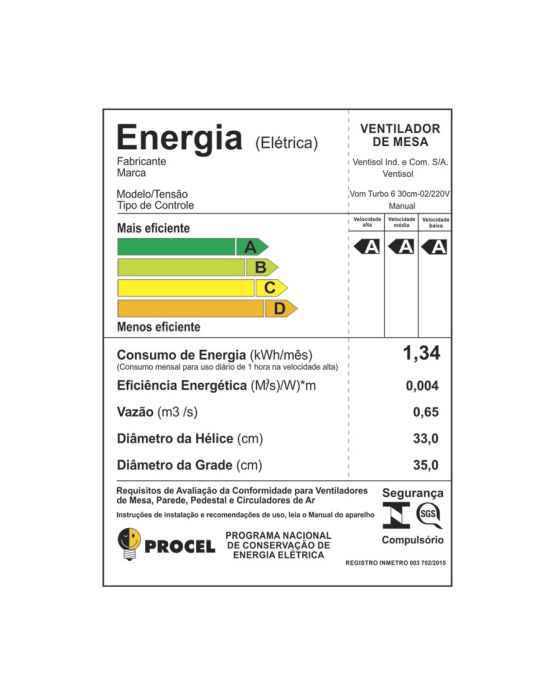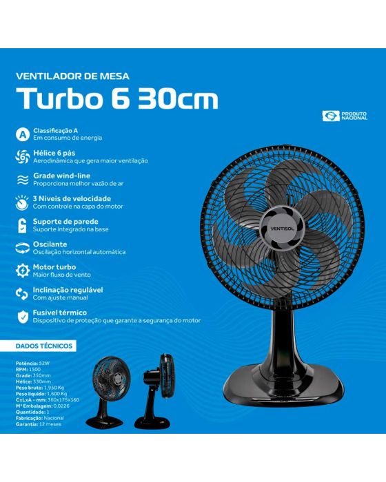 Ventilador De Mesa Turbo Premium 6p 52w 30cm 220v Ventisol