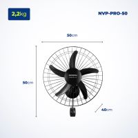 Características:O Ventilador de Parede Turbo Pro NVP-PRO-50 possui 50 cm de diâmetro e um design aerodinâmico de alta performance, que garante um ambiente sempre fresquinho, mesmo nos dias de calor intenso. O motor Turbo Pro de 150W, aliado a hélice de 5 pás, gera mais intensidade do vento e maior vazão do ar.Detalhes:- Marca: Mondial;- Modelo: Turbo;- Referência: NVP-PRO-50;- Linha: Ventiladores;- Cor: Preto;- Tensão: 220V;- Tipo de instalação: Parede;- Uso: Somente uso interno;- Contém: 1 unidade do produto;- Número de velocidades: 3 velocidades (mínimo, média e máxima);- Quantidade de pás: 5 pás;- Hélice com diâmetro de 50cm;- Grade frontal removível;- Inclinação vertical regulável;- Controle de velocidade para fixar na parede;- Mais silêncio e conforto;- Ambiente ventilado e espaço otimizado.Diferenciais:- Ventilador de 50cm + Hélice com 5 Pás: O design aerodinâmico e de alta performance do NVP-PRO-50 proporciona maior intensidade do vento e melhor distribuição de ar. O resultado é um ambiente mais fresco e arejado!- Otimização do Espaço + Suporte de Aço Reforçado: O ventilador de parede permite maior otimização do espaço. Além disso, o suporte que prende o aparelho à parede é de aço reforçado, garantindo maior sustentação e durabilidade;- Potência: 150W: Garante vento mais forte e com maior vazão do ar;- Grades de Aço Desmontável: A grade frontal de aço desmontável oferece mais segurança, resistência e facilidade na limpeza das hélices, o que simplifica a lavagem e a remoção de poeira, e garante melhor qualidade do ar; - Cntrole de Velocidade: As 3 opções de velocidade permitem adequar o vento à sua necessidade: Máxima Turbo, Média Conforto e Mínima Brisa;- Maior Distribuição de Ar: O Sistema Oscilante Contínuo amplia o raio de alcance do vento no ambiente, permitindo uma distribuição de ar mais eficiente nos cômodos da casa.- Inclinação Vertical Regulável: Para um direcionamento ideal do fluxo do ar.Energia:- Tensão: 220V;- Potência: 150W.Medidas:- Dimensões do produto montado: 50 x 50 x 50cm (CxLxA);- Dimensões da embalagem: 51,3 x 22,3 x 52,3cm (CxLxA);- Peso: 2,2kg.Conteúdo da embalagem: 1 ventilador de Parede Turbo NVP-PRO-50 Britânia e 1 manual de instruções.Garantia do fornecedor: 1 ano contra defeitos de fabricação.* As especificações podem ser alteradas sem aviso prévio ** Imagem meramente ilustrativa.