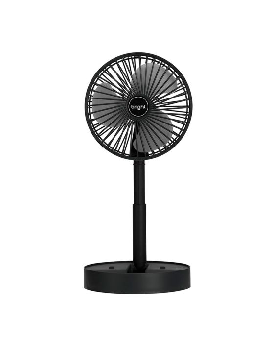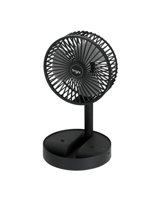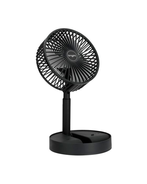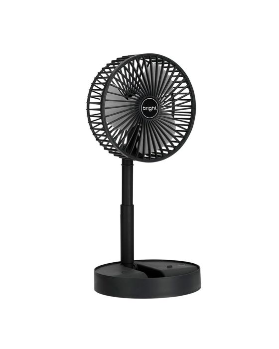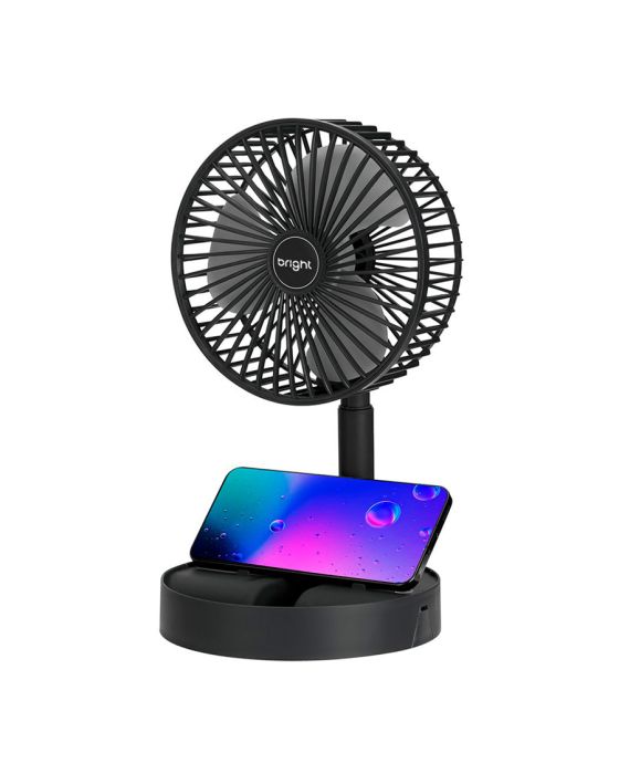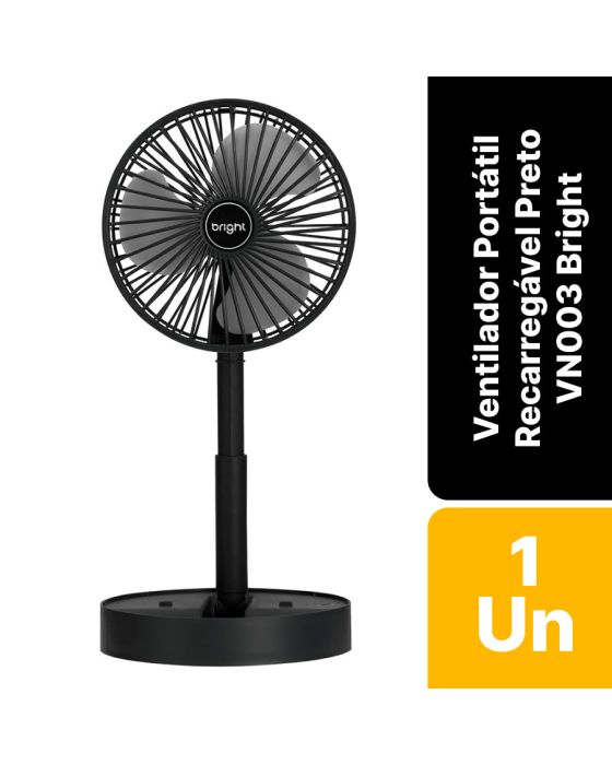 Características:Com o Ventilador Portátil Recarregável Bright é ideal para afastar o calor e manter o seu ambiente, seja em casa, escritório ou home office, mais arejado!É um ventilador prático e de fácil transporte, possui 3 pás, potência de 9v, ajuste manual de direção 180º, botão liga/desliga, além de ser inclinável e silencioso.Detalhes:- Marca: Bright;- Modelo: Ventilador Portátil Recarregável;- Referência: VN003;- Linha: Ventiladores Portáteis;- Cor: Preto;- Quantidade de pás: 3 pás;- Contém: 1 unidade do produto;- Recarregável: Autonomia de até 8 horas;- Articulado: Direcione o vento para onde quiser;- Dobrável: se torna compacto para guardar;- Altura ajustável: de 3cm até 36cm;- Silencioso com apoio para celular;- Potente.Energia:- Potencia: 4,5W;- Voltagem: 5V;- Porta de carregamento Tipo C;- Capacidade da bateria: 800mAh;- Ruído: 40db.Composição:- Fabricado em ABS.Medidas:- Dimensões do produto “esticado”: 8,5 x 16,5 x 16,5cm (AxLxP);- Dimensões do produto dobrado: 30 x 16,5 x 16,5cm (AxLxP);- Peso: 305g.Conteúdo da embalagem: 01 Ventilador Bright e 01 Cabo de Carregamento.Garantia do fornecedor: 1 ano contra defeitos de frabriçação.* As especificações podem ser alteradas sem aviso prévio ** Imagem meramente ilustrativa.
